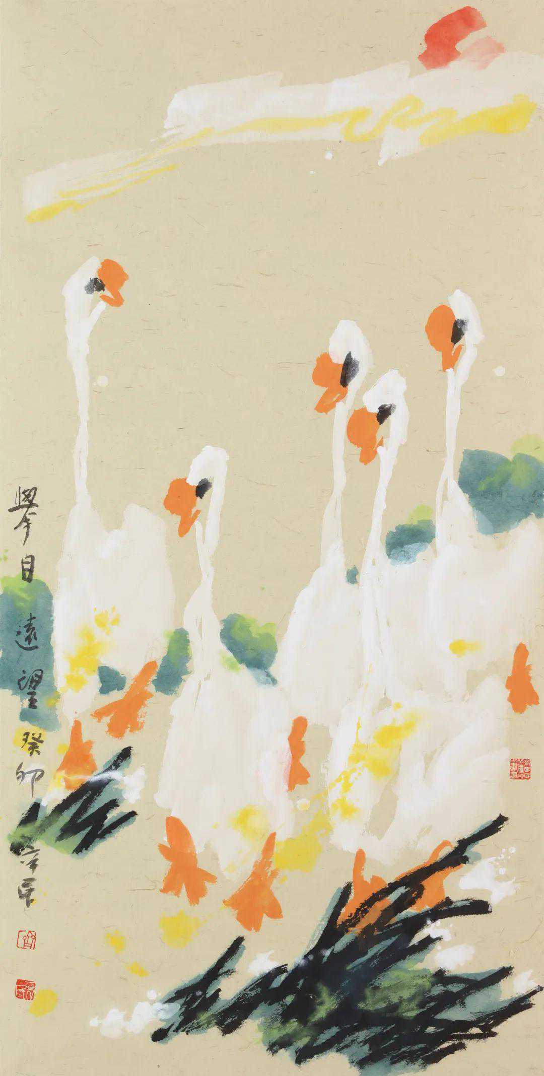 汤立—1947年出生于湖北武汉,现为中国现代文化研究中心研究员,中国艺术研究院文学艺术院研究员,中国国家画院研究员。早年从事现代山水画创作,后转向大写意花鸟画,偶作写意人物,能文能诗,擅长书法,是当代极具影响力的写意画大家。