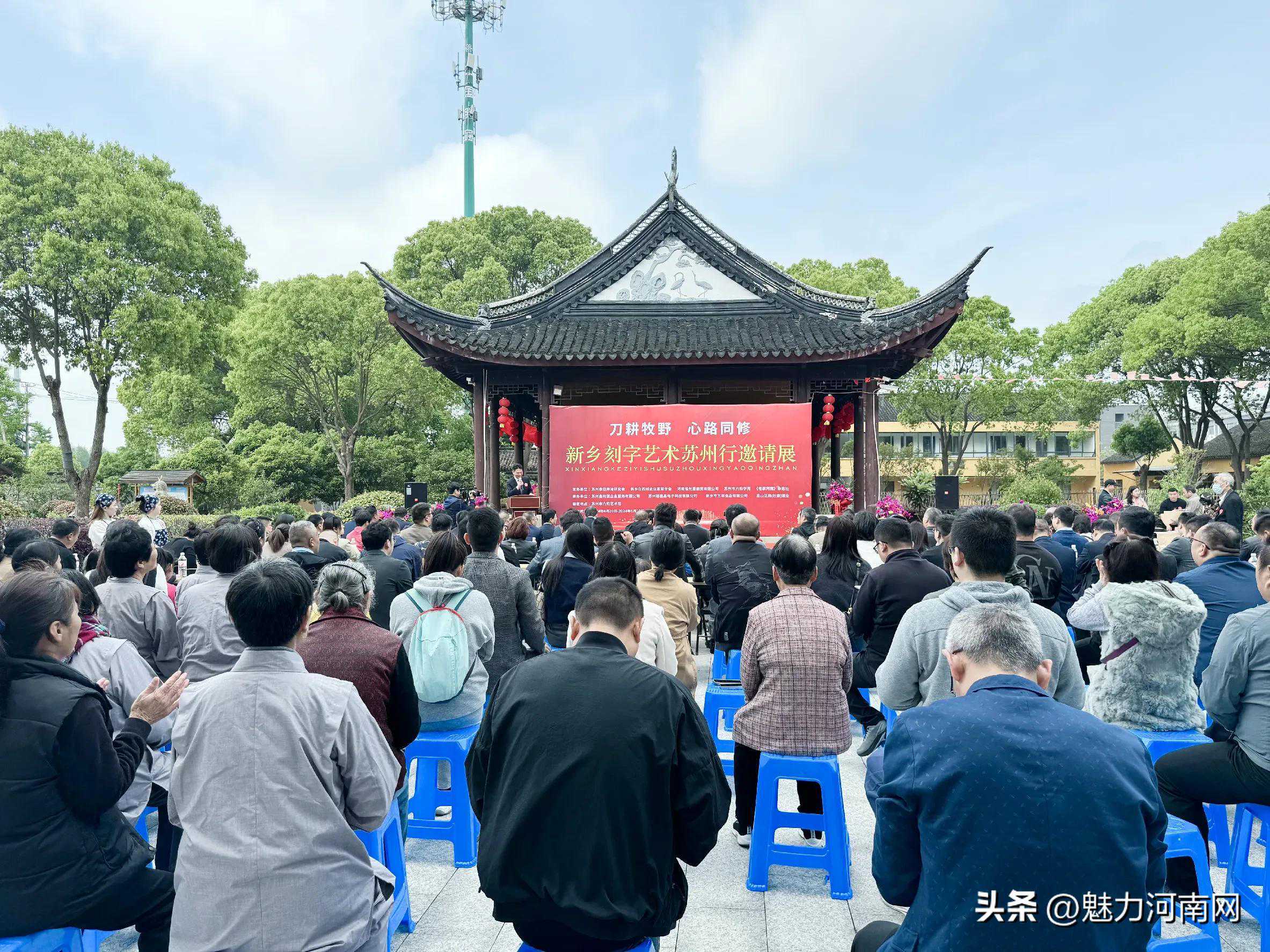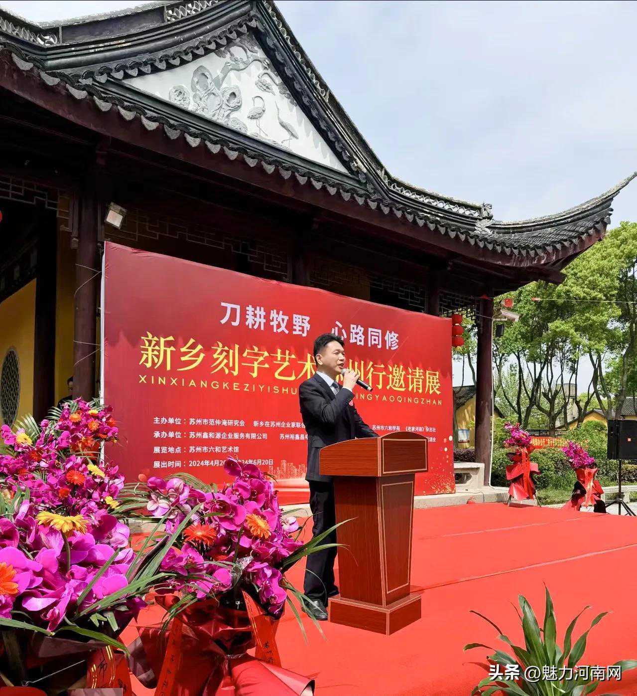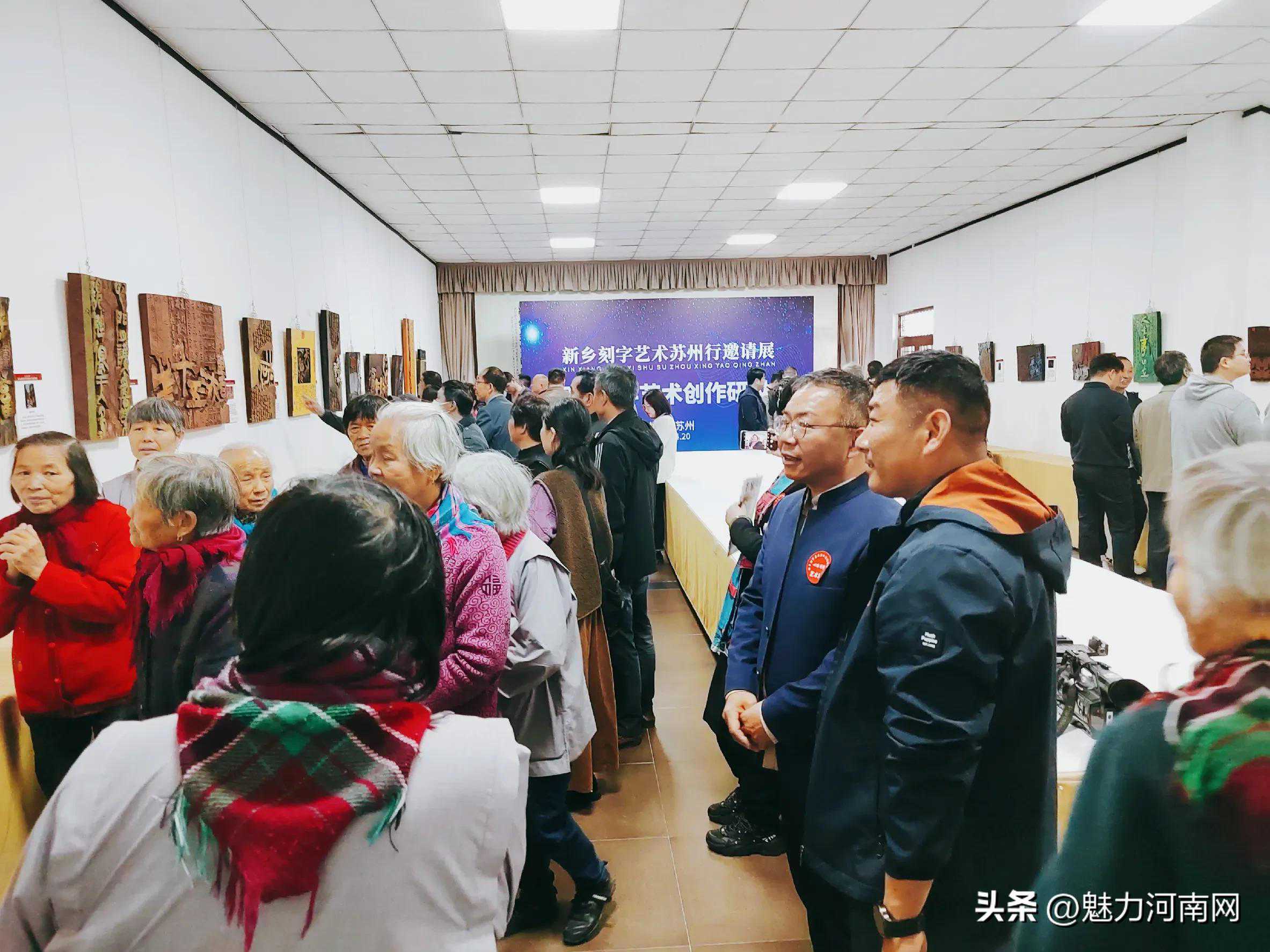 (魅力河南网苏州)4月20日,“刀耕牧野心路同修”新乡刻字艺术苏州行邀请展活动在苏州市六和艺术馆拉开帷幕,来自河南新乡20多位书法刻字艺术家创作的100余幅作品,为苏州市民开启了一场书法刻字艺术的浪漫之旅,让他们共享艺术的魅力盛宴。