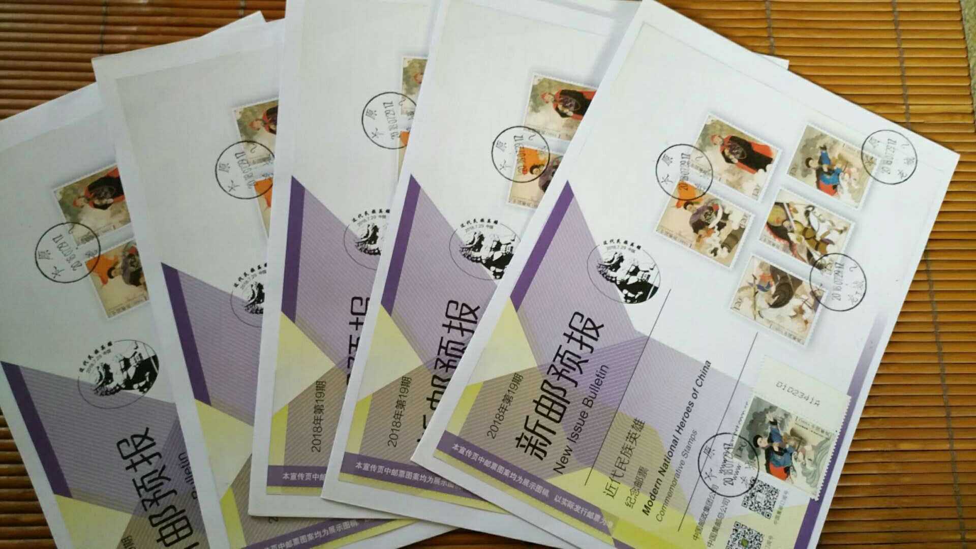 7月29日,中国邮政发行的《近代民族英雄》纪念邮票为一套5枚,分别为:1.关天培;2.林则徐;3.刘永福;4.冯子材;5.邓世昌。