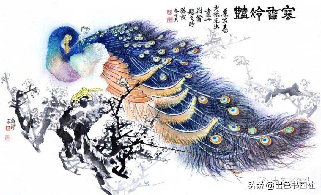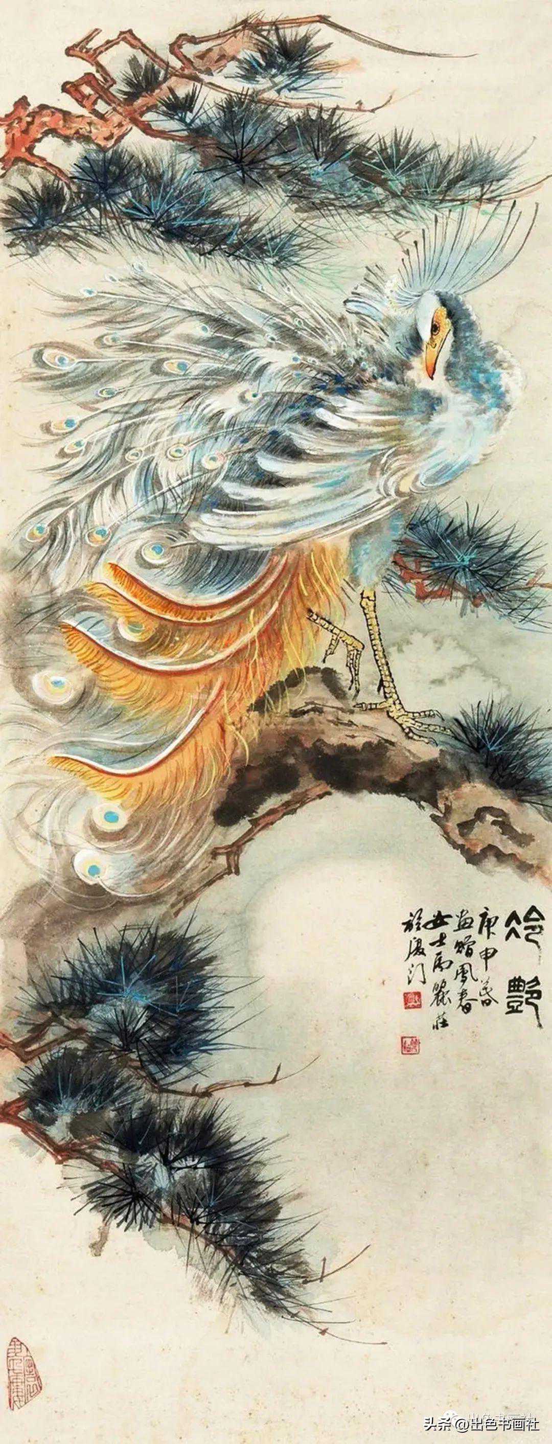 区丽庄笔下的孔雀图艳而不俗,神态生动,格调高雅,生活美与艺术美跃然纸上。
