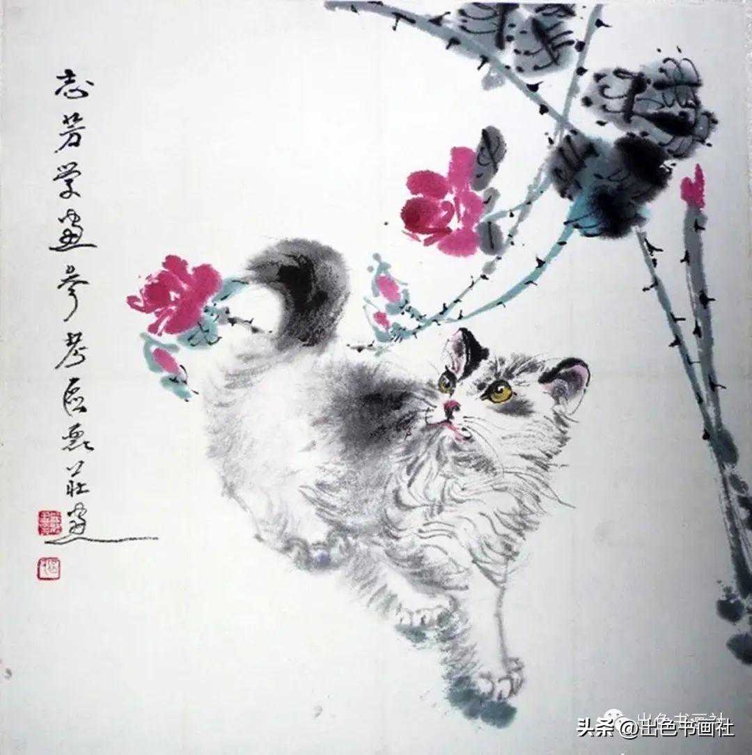 区丽庄曾经豢养了不少只猫,故能够对猫的刻画入木三分,画里的猫赋彩雅致,充满张力,焕发着蓬勃的生命气息。