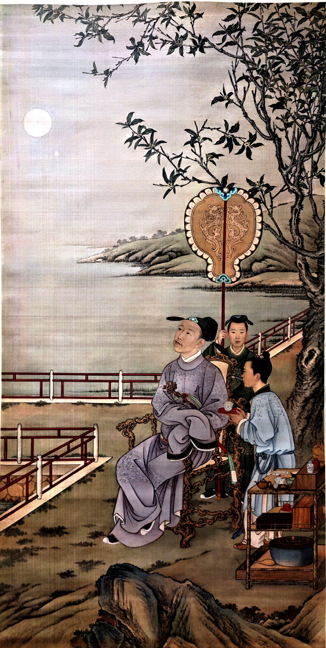 清人画弘历观月图轴