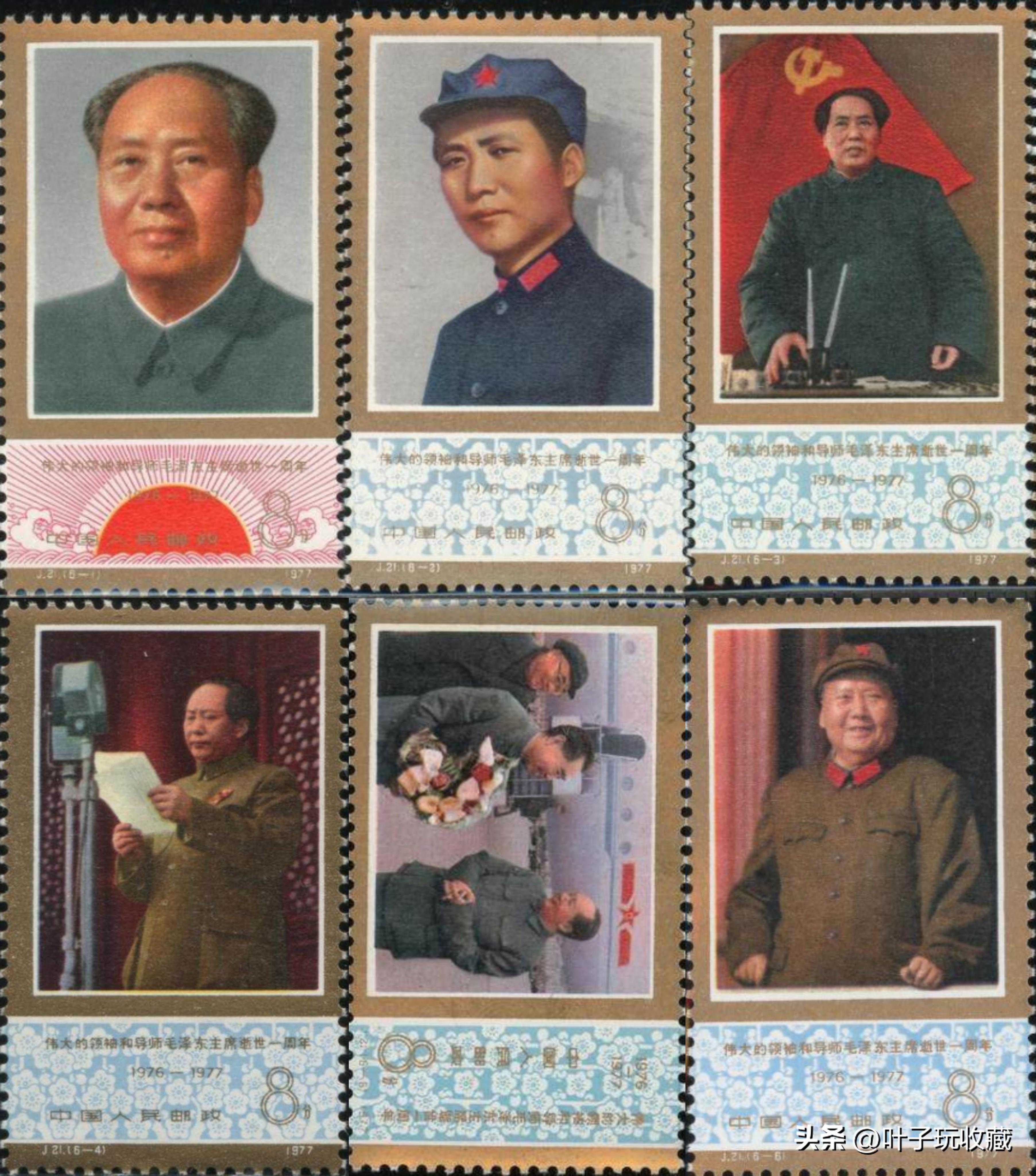J21—伟大的领袖和导师毛泽东主席逝世一周年此套邮票由刘硕仁设计,于1977年9月9日发行,全套6枚,全张为40枚,影写版,发行量3000万套。