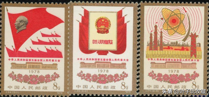 J24—中华人民共和国第五届全国人民代表大会由刘硕仁设计,于1978年2月26日发行,全套3枚,全张为50枚,发行量1500万套。