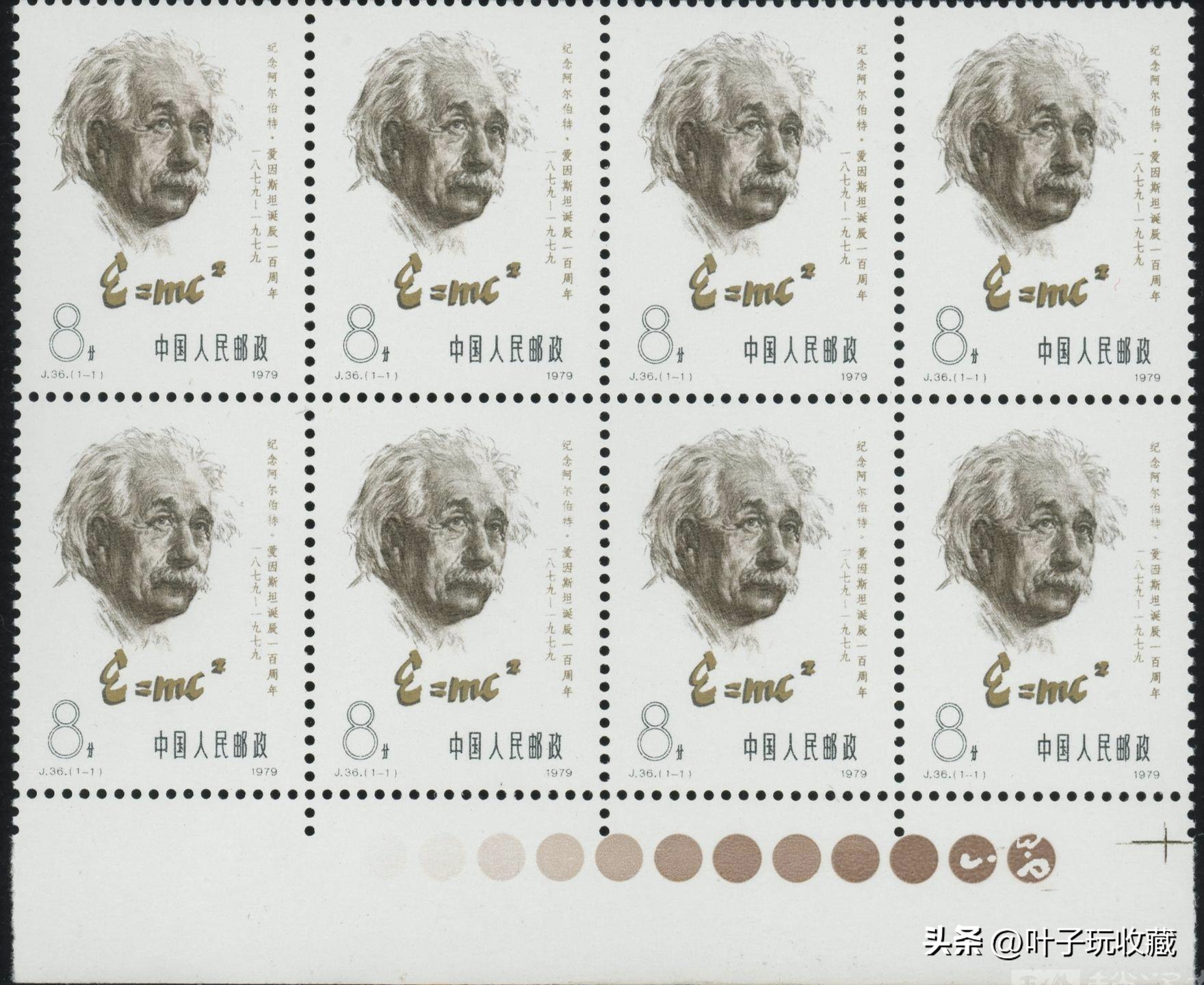 J36—纪念爱因斯坦诞辰100周年由李印清设计,于1979年3月14日发行,单枚,全张50枚,影写版,发行量1500万套。