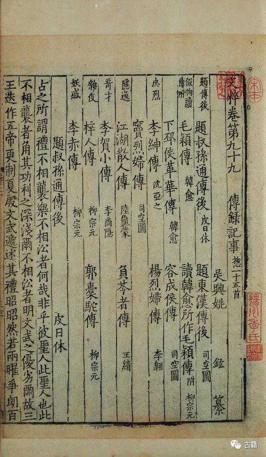 第二例,《文粹》一百卷,某《图录》选用了第九十九卷书影和第一百卷后的“校正者名录”书影。
