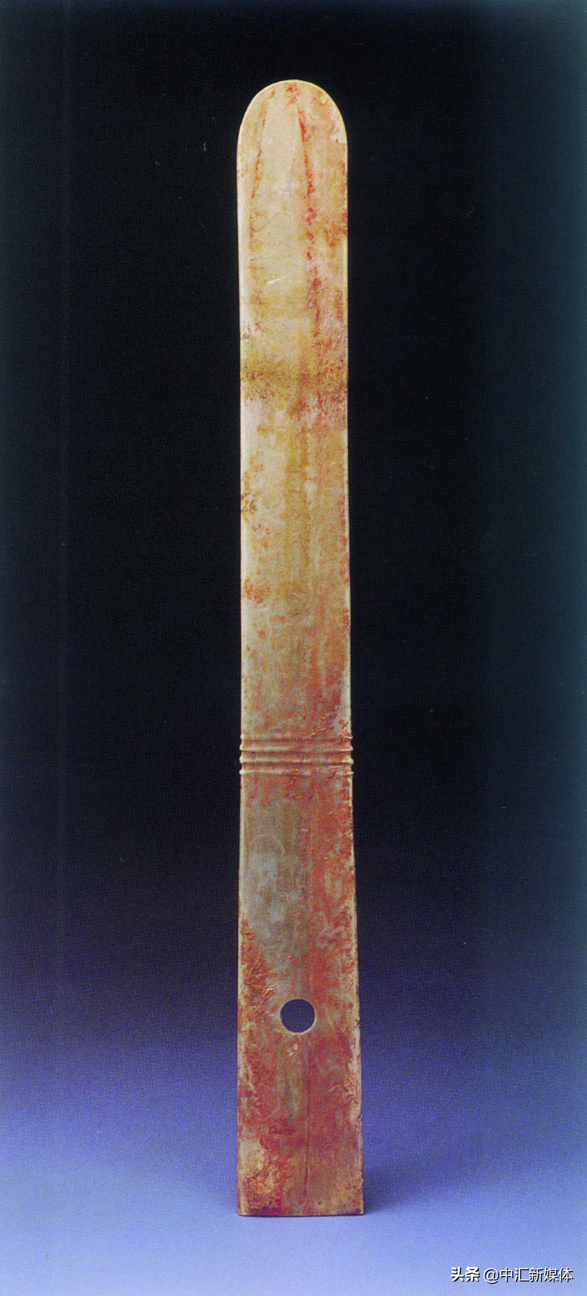 玉器上纹饰极为丰富精彩,所反映的内容也极其广泛,涵盖社会生活的方方面面。仅举两例:在礼器上,镌刻大面积图案,是三星堆玉器的特色。玉边璋上复杂、神秘的纹饰,被解读为蜀山祭祀图(也称蜀王祈子图)。但真正含义不得而之。