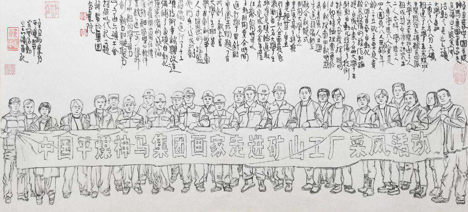 辛丑三月,由集团书画院院长韩和平带队的采风团,先后走访了一矿、二矿、六矿、十矿、首山矿、帘子布厂、联合盐化公司等单位。来自各厂矿的美术创作骨干20多人参加了此次采风活动。