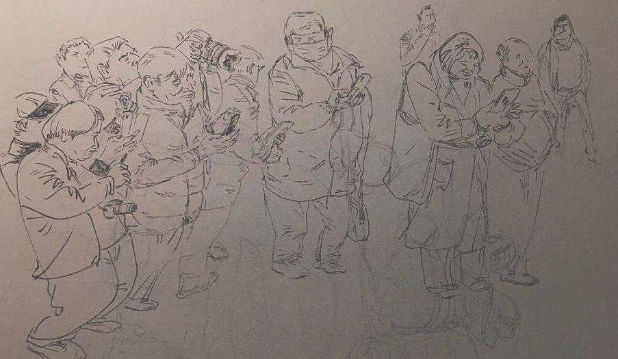 画家们通过画速写、拍照等方式,记录着一个又一个瞬间,汇录了大量的相关素材,为今后的创作搜集到了富有真情实感的第一手资料。今天在这里展出的是近一阶段部分画家的速写、草图、粉稿、小品,以及正在进行中的创作思路图样。