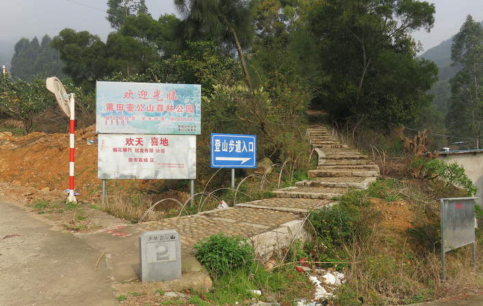 地点:新度镇下坂村与沟尾村交界处。你也乘坐10块钱黑面的车抵达壶公山脚下,这里是属于新度镇境内的下坂村,山脚的登山路就靠近沈海高速公路的一处下穿涵洞处。接着就可以跟着大部队人群一起登山了,周围据说是有另一条上山的路。接下来进入下坂村的村道里,可以看到登山的指示牌,顺着路牌走就可以了。