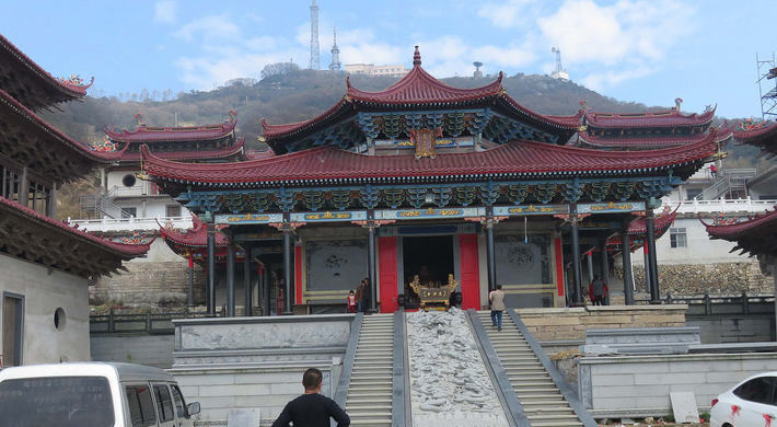 为唐名僧妙应创建于壶山南坡上,初名灵云岩精舍,明嘉靖六年(1527)改称凌云殿,与福源寺联建,面积3468平方米,主殿为重檐歇山造,一排共五座殿宇,梁架柱头雕画细致,前檐下一对盘龙石柱,雕艺精湛,殿后