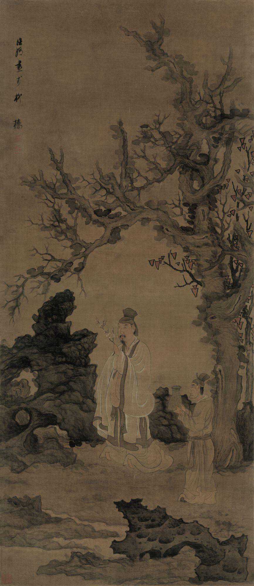 陈洪绶出生名门望族,自小就学习儒道思想,家道中落之后体会到市民阶层的生活,将这两种生活情感融入到他自己绘画之中,作品富有装饰性和世俗性的艺术表达,从而打破了文人和世俗的界限,形成了雅俗共赏的艺术风格。