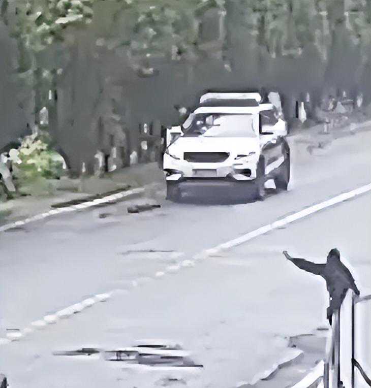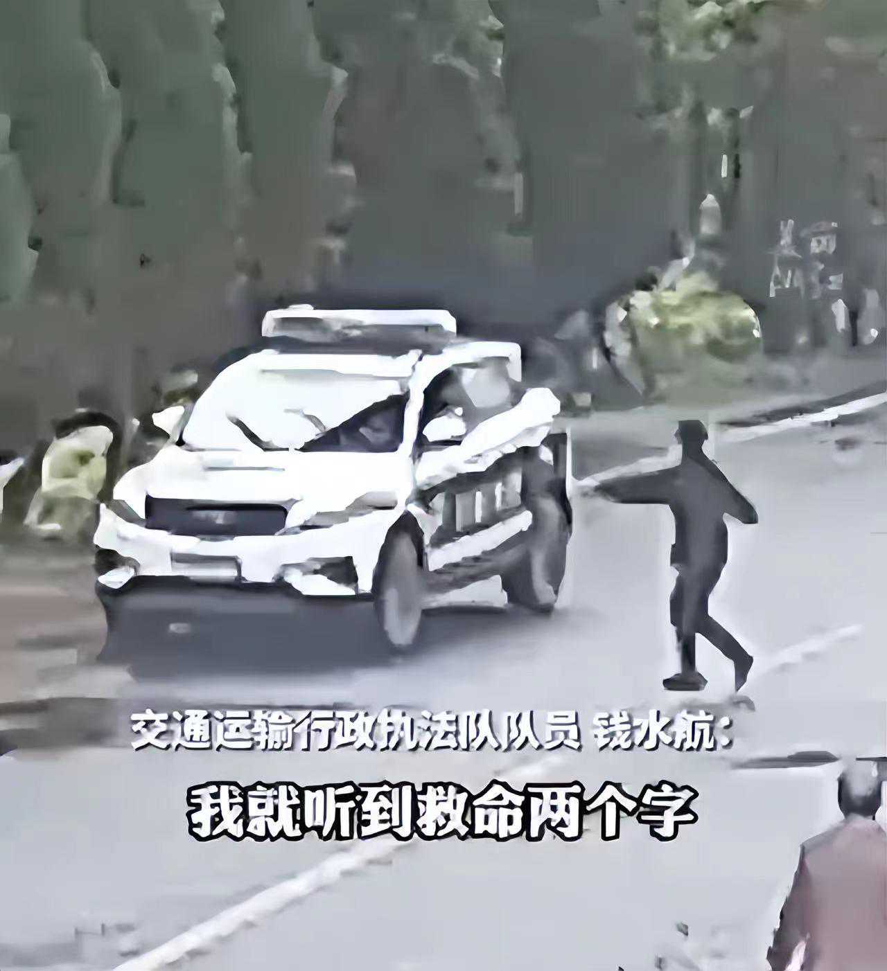 女子从路边突然飞扑向一个车辆,而且遇到的还是执法车辆,更能给人安全感。