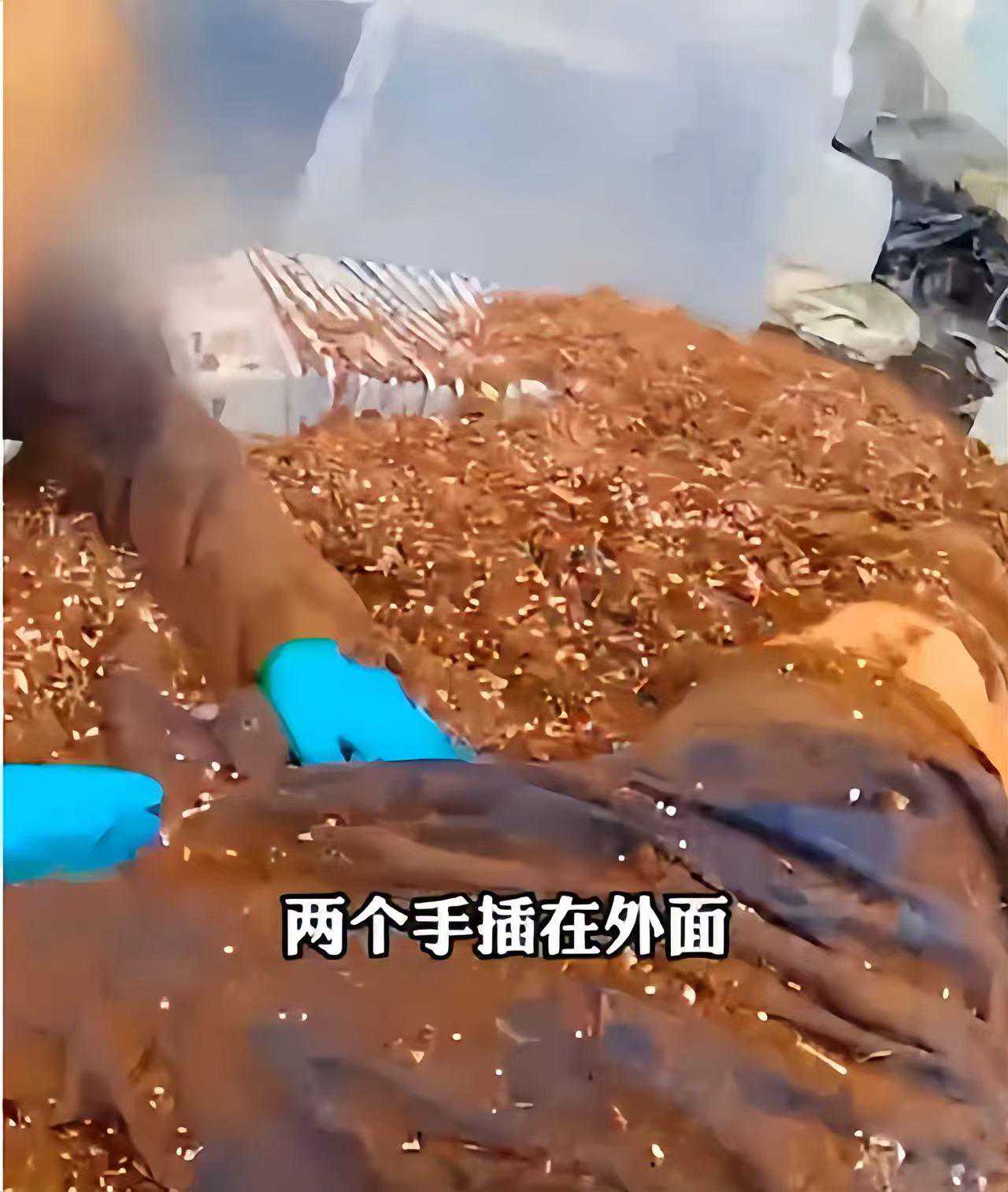 只见男子被一堆的肥料掩埋住了,看到男子的状态完全就是活埋的状态,那感觉是非常恐怖的。