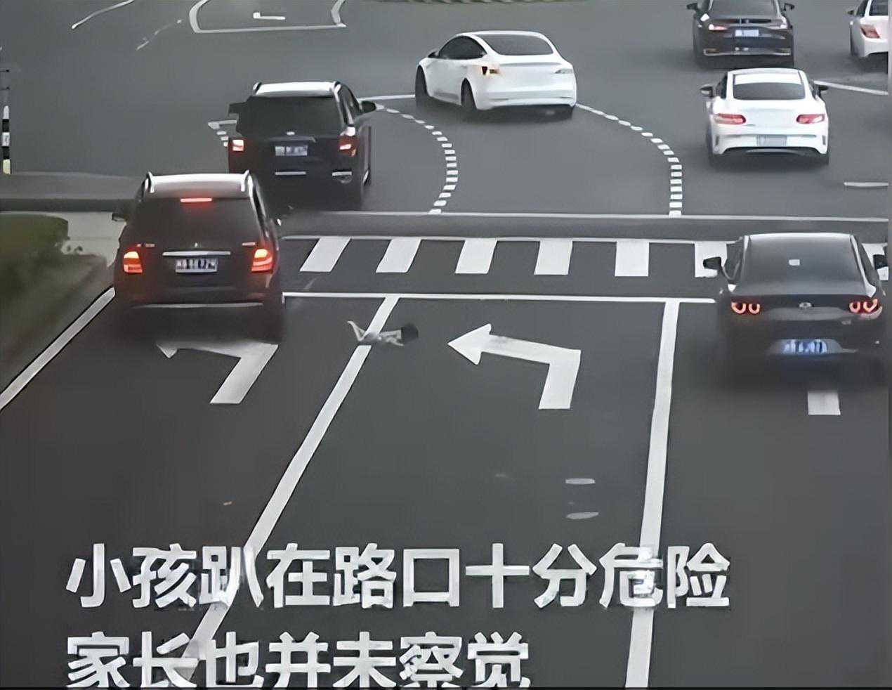 当时的情形十分的危险,后面的车辆还在不停的往前看,眼见小孩子的处境越来越危险,突然有辆车“挺身而出”。