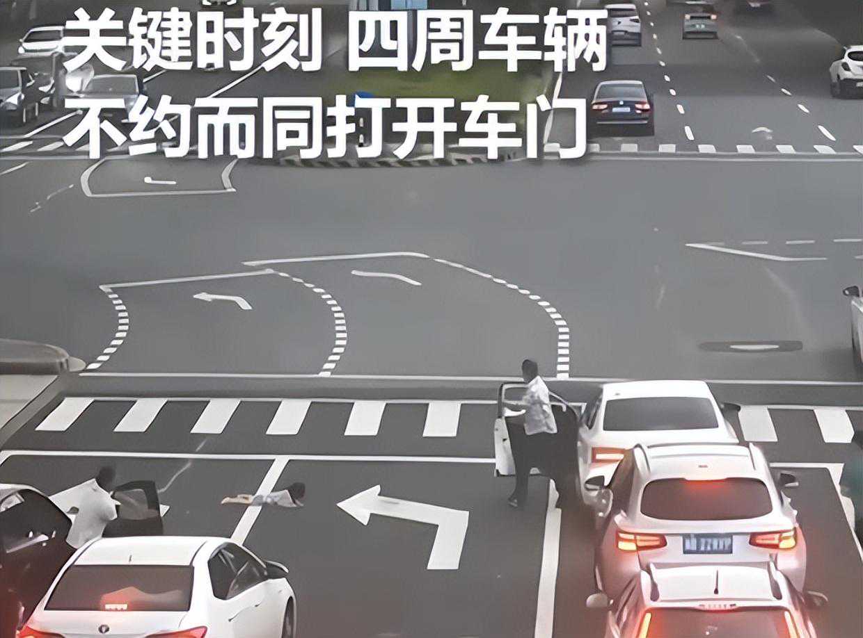 随着白车的停滞,越来越多的车停了下来,很多车主见状都纷纷开车门下车,冲向小女孩的方向。