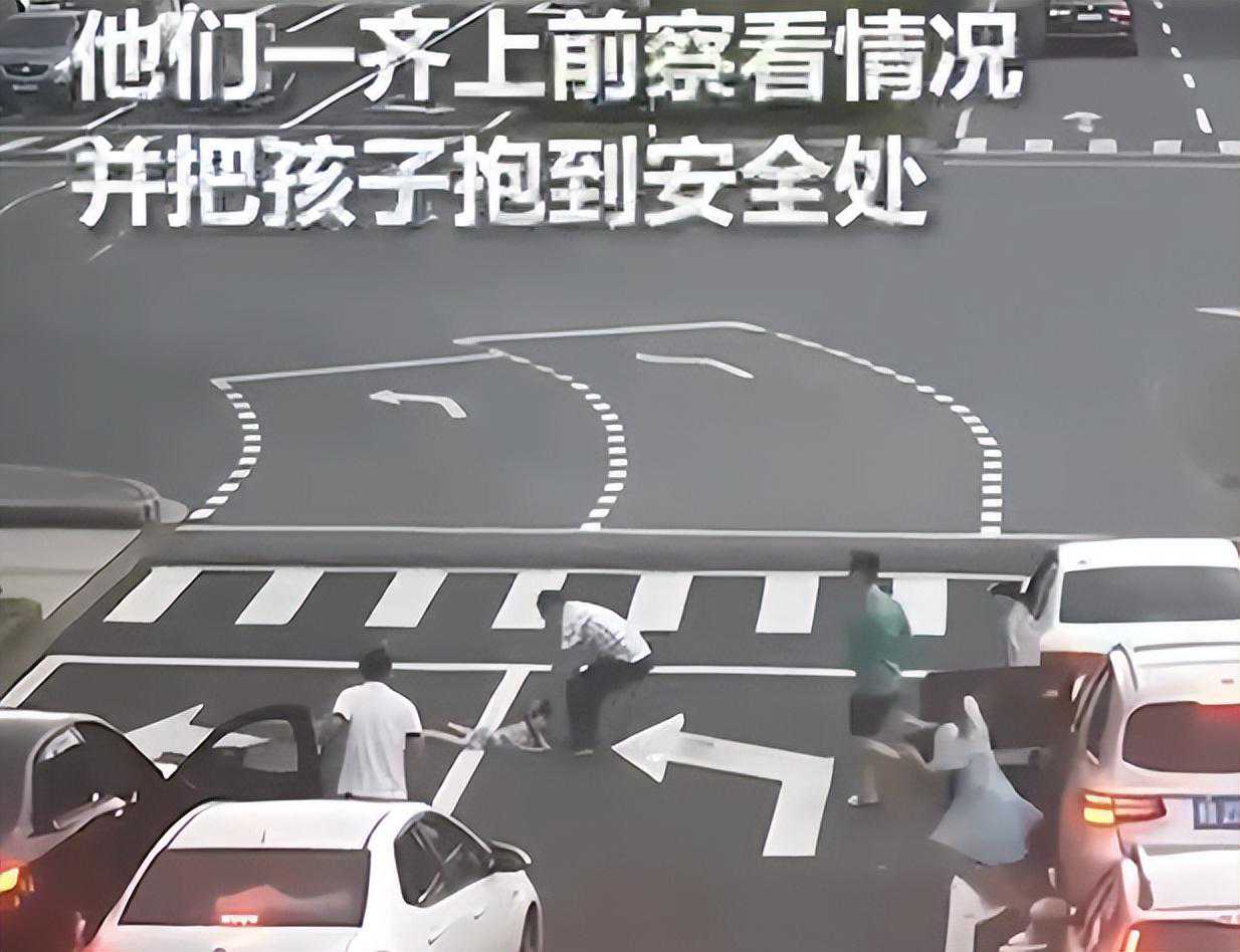 他们一起上去查看小孩子的情况,赶紧把小孩子抱到了一个安全的地方。
