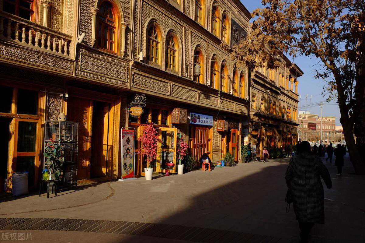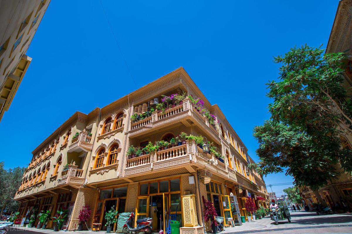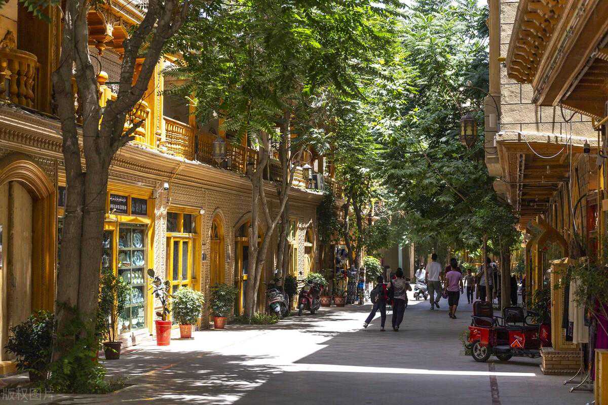 团城民族风情街,是和田比较有南疆风情的街道,漫步团城街头,映入眼帘的仿佛是喀什噶尔古城中的街巷,分布着南疆西域风情的建筑,让人仿佛置身在国外,这里也是和田有名的网红打卡景点。