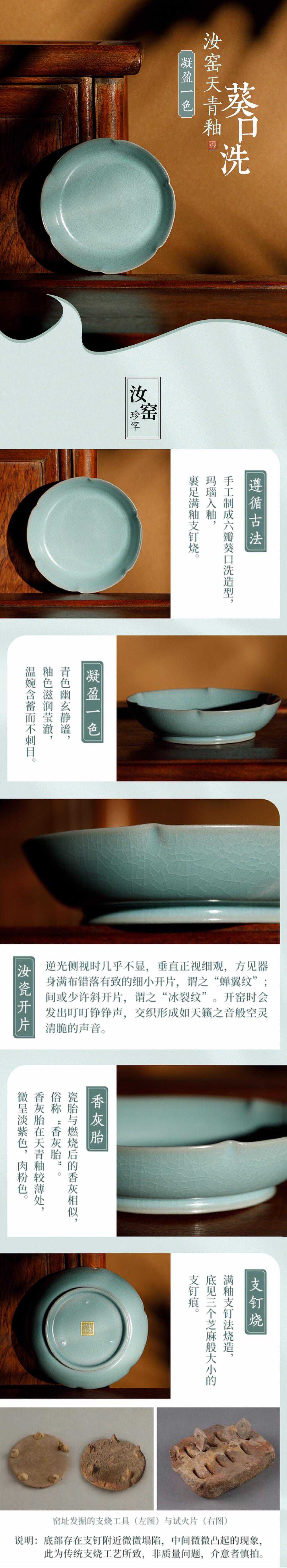 我们有一个心愿,原此系列成为物证,将汝瓷风华传将下去,以下为本件【汝窑天青釉葵口洗】,它可以伴生活,可以载历史,为古人珍物,亦为你之珍物▼