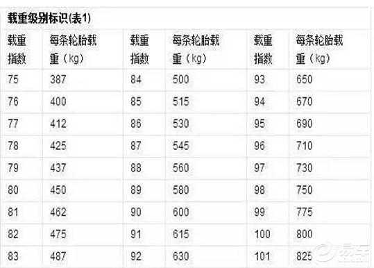 从该表中,车主可以一目了然的看出轮胎型号所代表的限重值,数字越大,表示限重值越高,当车辆严重超载或是换上了载重指数过低的轮胎,此时爆胎的风险就会大幅增加。