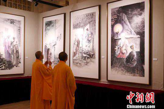 中新网上海(记者李佳佳张亨伟)5日,“刘居时六祖故事画展”在上海玉佛禅寺拉开帷幕。共展出著名书画艺术家刘居时以六祖惠能大师生平故事为主线创作的62幅系列故事画。