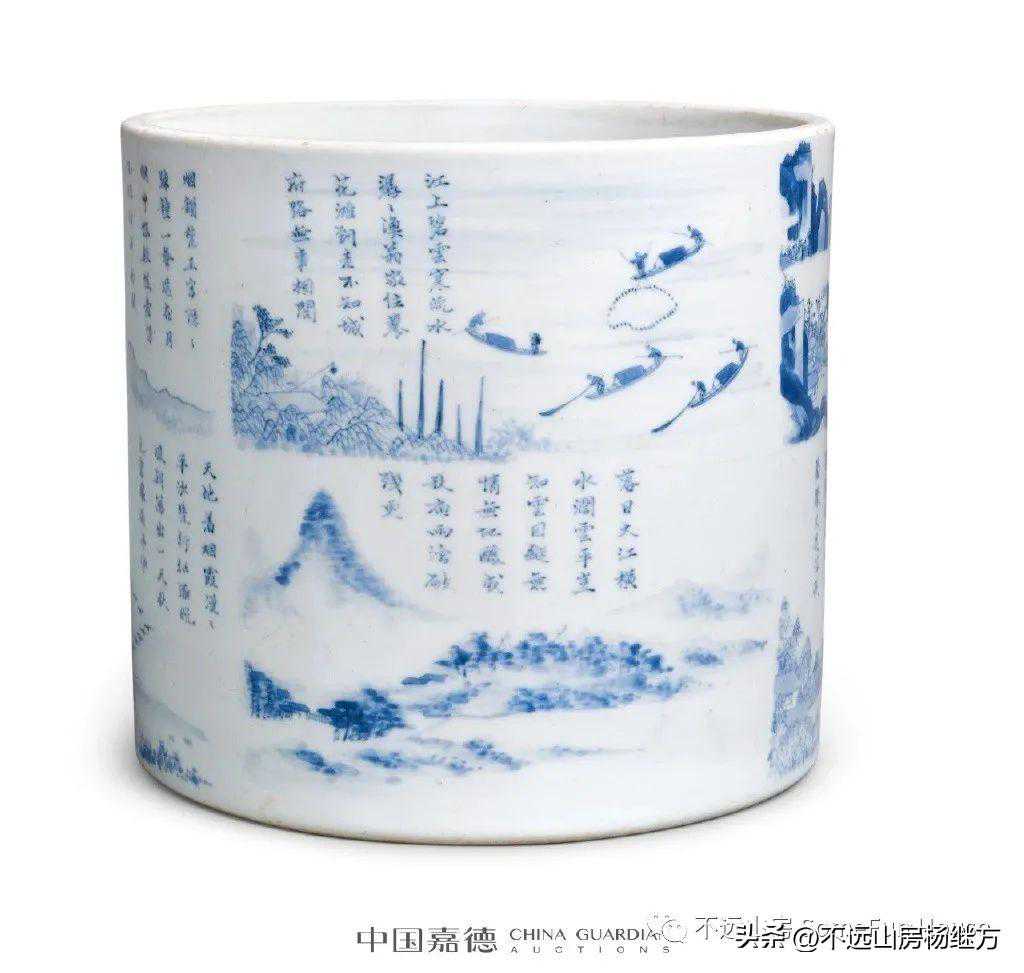 中国嘉德2020春的天物馆旧藏康熙青花潇湘八景诗文笔筒