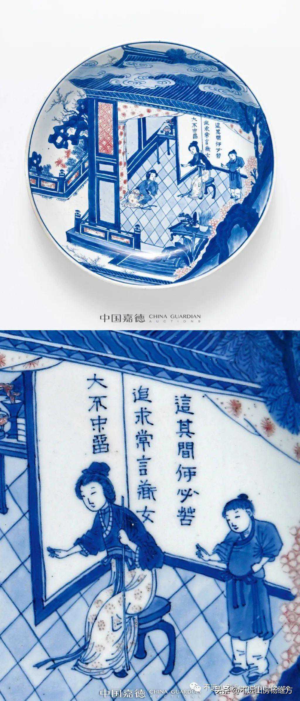 中国嘉德2021年四季春拍的柯蒂斯旧藏康熙青花釉里红西厢记故事图盘