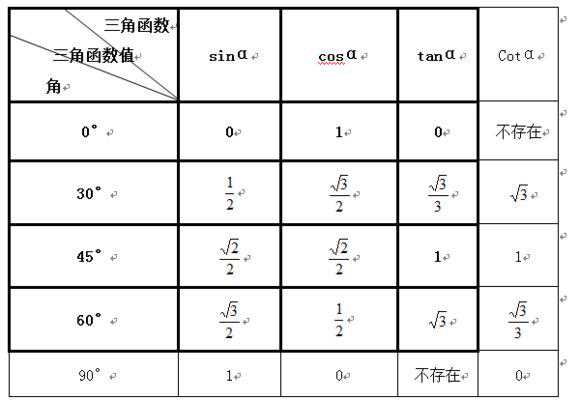 二、特殊角的三角函数值:(粗线格里的必须掌握)