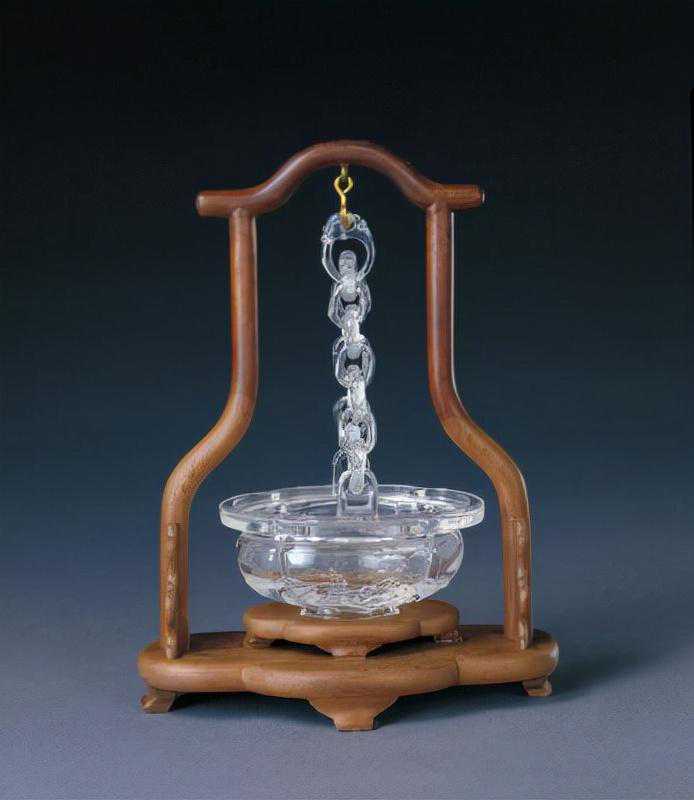 花篮系一块整料制成,设计精巧,琢磨圆润,为清中期水晶制品之佳作。