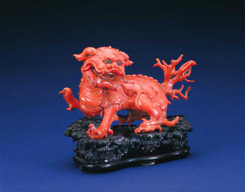 珊瑚狮子,清,高14.3cm,长23cm。