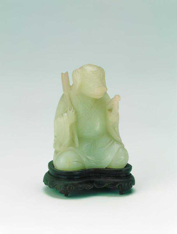 青玉罗汉,清,高23.7cm,宽14cm,厚5.5cm。