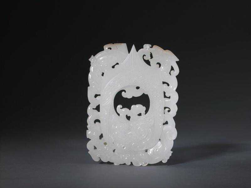 白玉镂雕盘长纹扁方,清,长28.9cm,3cm。