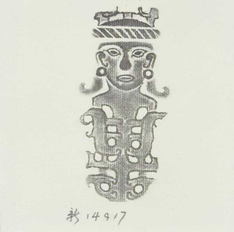 据分析,作品原系嵌于柱形器的角部,3件或4件为一组,这样的柱形器可能是玉琮之类的器物。