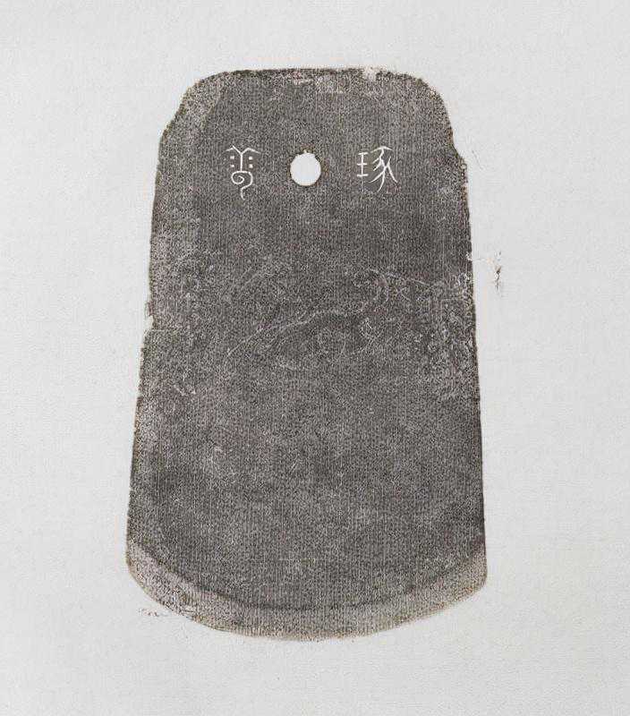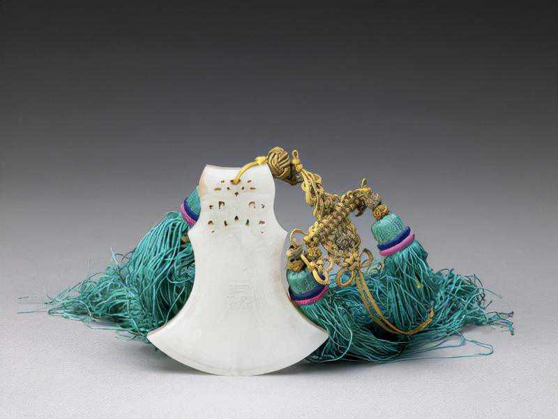 青玉十二辰斧形佩——辰,清,高8.8cm,宽7.5cm,厚0.7cm。
