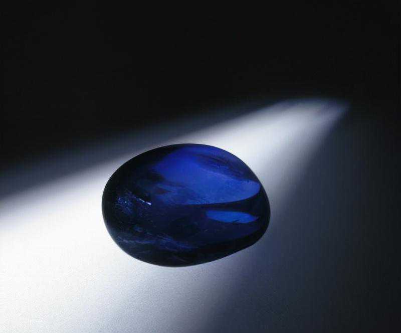 宝石椭圆形,为经过简单磨制尚未镶嵌的裸石。该宝石呈深蓝色,清澈透明,品质纯正,是蓝宝石中之佳品。