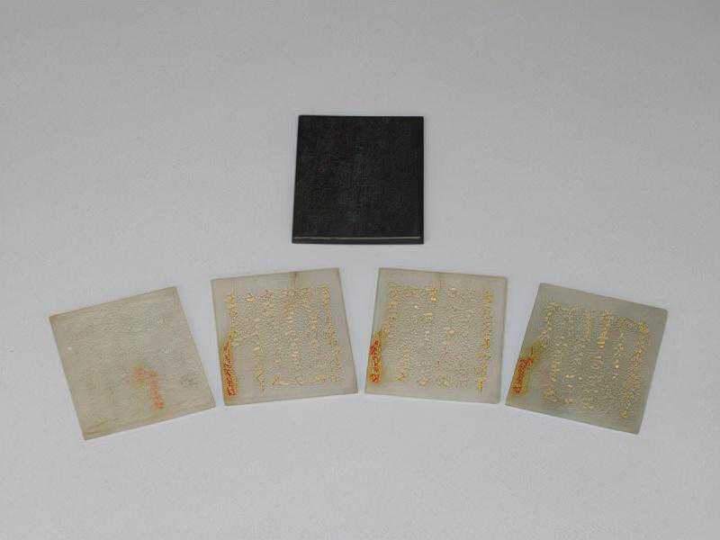 白玉乾隆临王羲之帖册,清,长6cm,宽5cm,厚1cm。共四片,为乾隆皇帝御临王羲之十七帖。