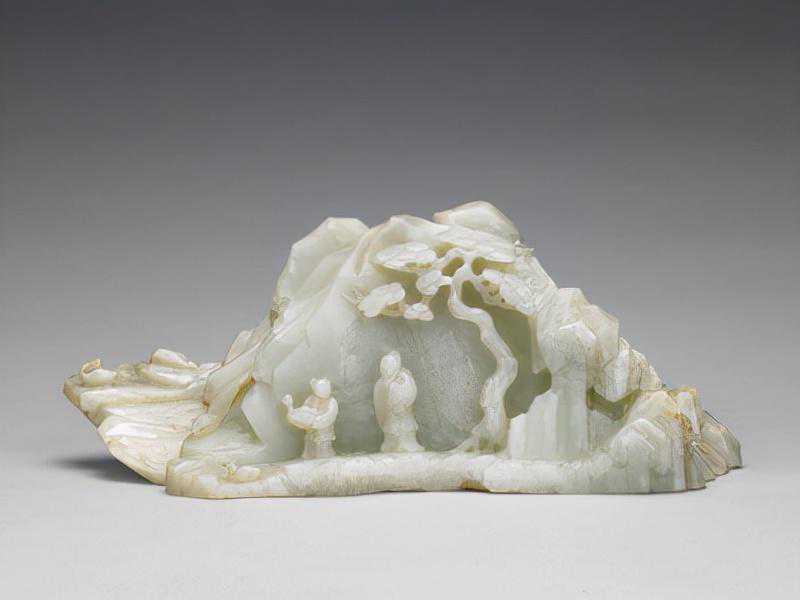 玉器表面琢碾带有叙事性和图画性装饰图案的做法,始于宋代。明代玉图画更为盛行,多将山水、人物、花鸟、典故、诗文意境移植到玉质器皿的表面作通景式的表达,但这种表现多是平面的。玉山子作为室内陈设之一,在清代十分流行,既有硕大无朋重达万斤的大禹治水图山子,也有精巧雅致可收纳于百事件中者,大小适中的案头陈设山子更是不胜枚举。玉山子多取材绘画、诗文、历史故事,精心布局,立体展示,有的更镌刻诗文、印章,成为集诗、书、画、印于一体的极富文人雅趣的三维雕刻艺术。