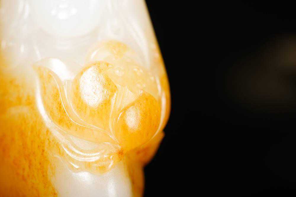 周身皮色裹挟,与白肉互成依偎之势,作品随形就势、构思巧妙,线条干净流畅,工艺极致无缺,是件可藏可赏的玉艺佳作。