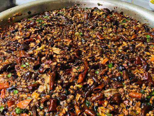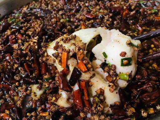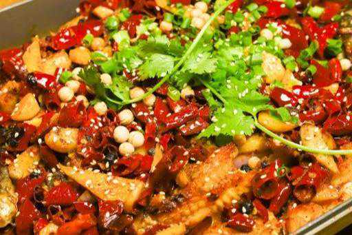 鱼整盆鱼上漂满了清油炸的花椒和辣椒,