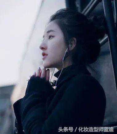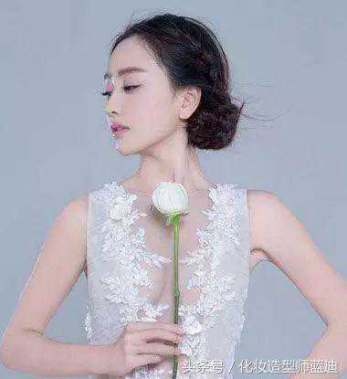 对头型的修饰也是很到位的,女生偏分低扎盘发发型,将发顶上的头发分开两边,梳的整齐又自然,偏分在脸颊外侧的头发,发尾的线条整理有着内扣弯角的效果,后梳盘发发型,秀气极了。