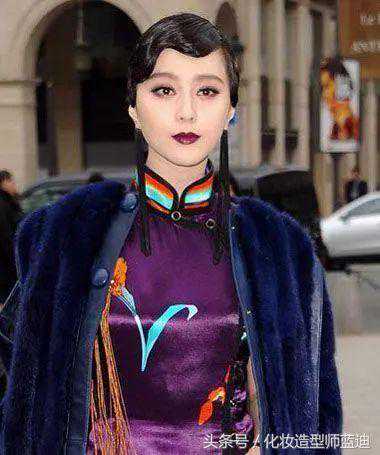 民族风的造型,在任何时节,都张扬着自己独特的魅力。范冰冰的发型,这款复古中国风的款式,耳饰和发型的搭配也蛮自然的。斜襟的旗袍搭配蓝色的皮草,黑色头发用发油做的蜿蜒。