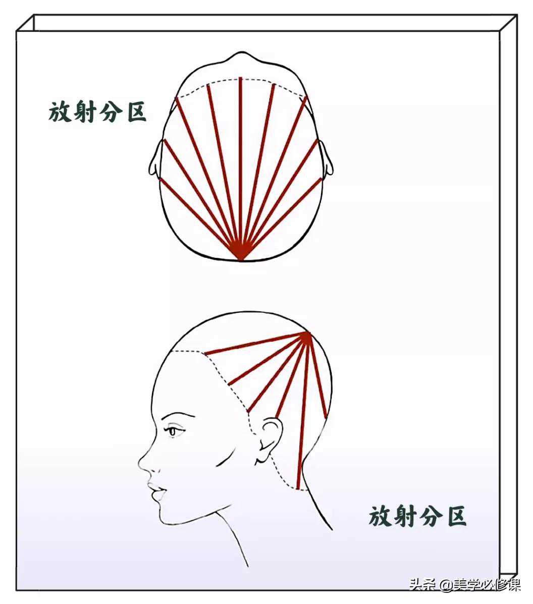 第六种:放射分区,主要用途是不收紧,不加款,能够很好的保证头型原有的圆润度,适合脸平的妹子。