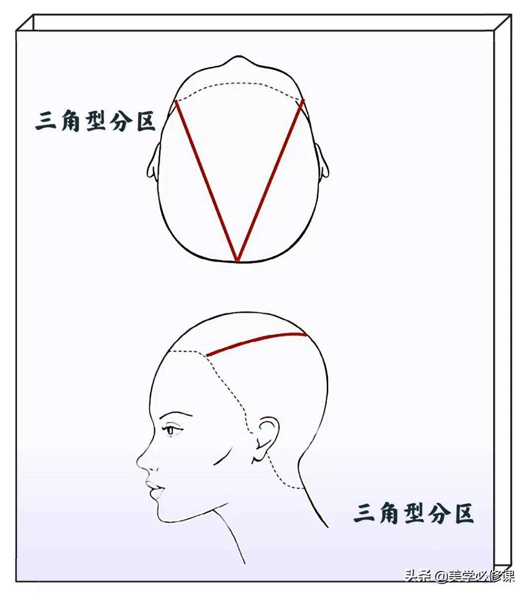 第五种:三角型分区,常用在修剪刘海,烫发和染发都会用到。