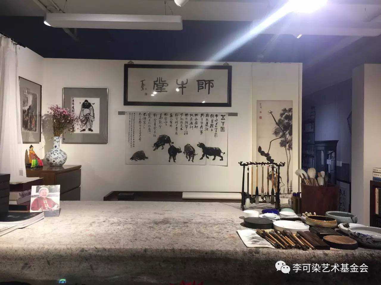 于是,4月,在李可染艺术基金会美术馆,按照原大实景复原了“师牛堂”,一扇窗、一幅对联、一件雕塑、一个旧家具、一块桌布以及原来师牛堂中每天传出的京剧唱腔……一切一切都由小可先生亲手或监督而成。进入这个“师牛堂”,仿佛时光倒流。