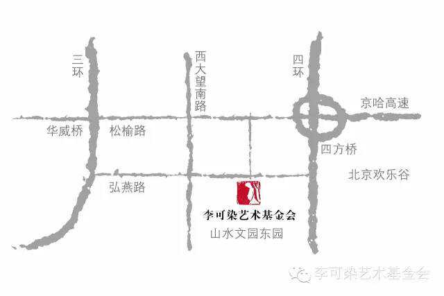 行车路线:开车行驶至东四环,在窑洼湖桥处进入辅路,继续前行过四方桥后,在弘燕桥下绿灯右转向西(山水艺术大道)第一个红绿灯即到(三个图腾柱子处)。