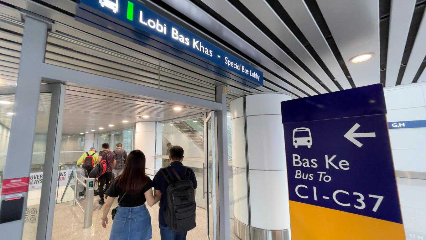 然后坐电梯下二层,过海关后,乘坐大巴到T1航站楼的另一侧,转机到古晋。