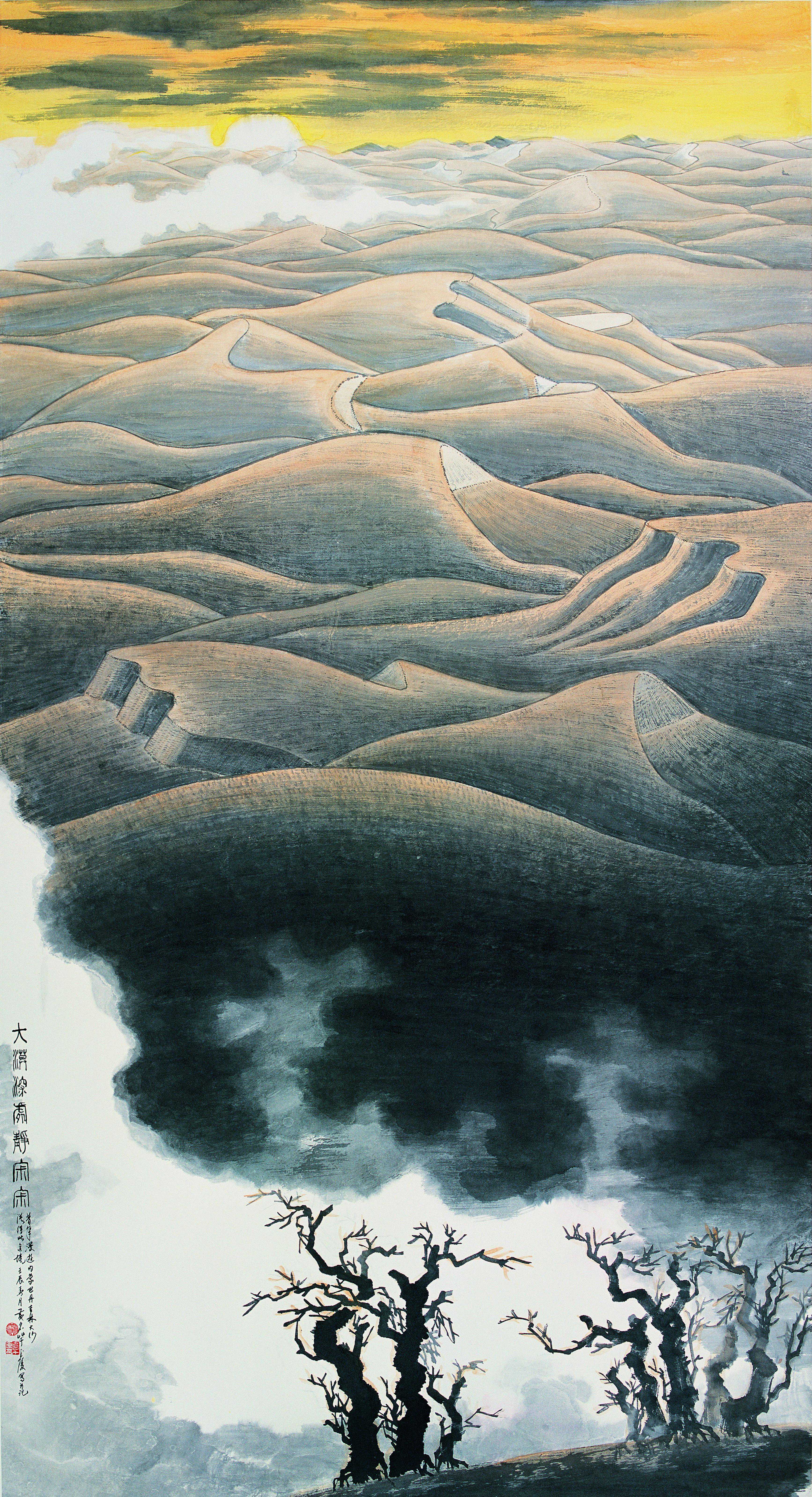 靳文艺,祖籍山西,生于内蒙古,定居北京,中国美术家协会会员,国家一级美术师,于1982年历时一年三个月,徒步单人沿黄河源头到入海口写生。先后毕业于内蒙师范大学艺术系,南京艺术学院国画系,中国国家画院。现为中国宋庄国画院执行院长,荣宝斋画院,清华美院中国画高研班导师,中国教育电视台CETV4《名家讲堂》山水画主讲,《丹青》杂志总编。作品被中央军委八一办公大楼,人民大会堂,中国开发银行等收藏。