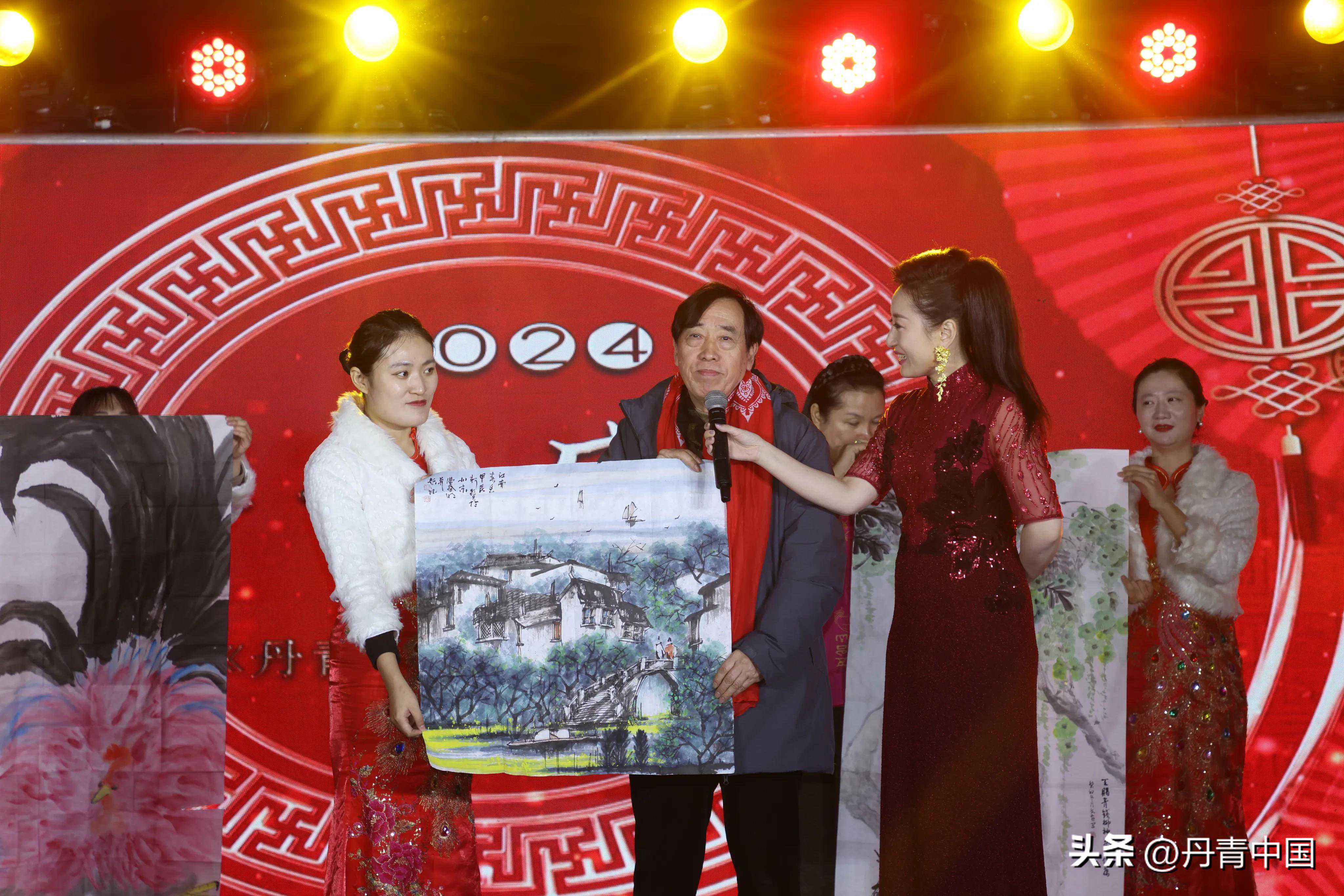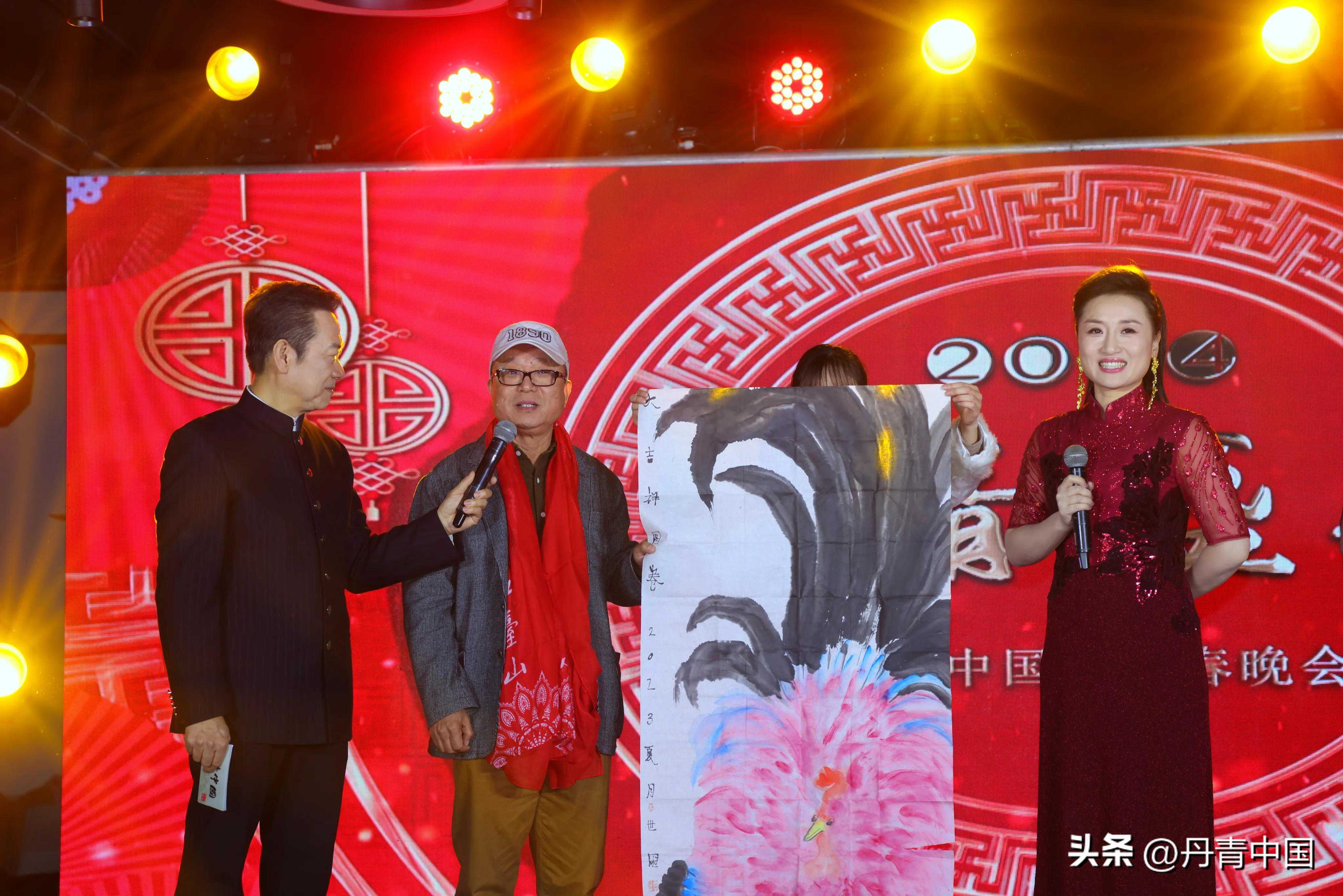 丹青盛典《丹青中国》2024新春晚会书画家迎春贺岁环节,中国美术家协会理事蒋世国,宋庄国画院执行院长靳文艺,中国美术家协会会员冯春明,画家文燕上台展示了各自创作的作品并给大家送上新春的祝福。
