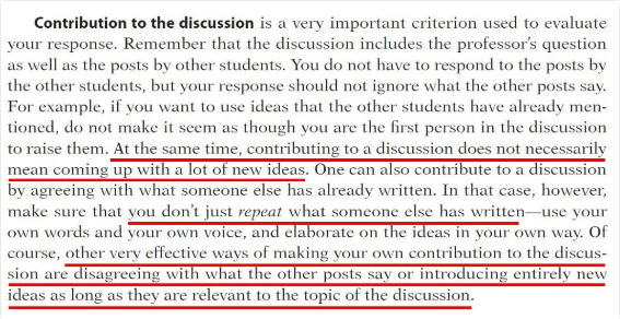 经常有同学会问,我到底需不需要在自己的答案中囊括题目中两位同学的观点?是不是所描述的观点一定要是全新的才能保证拿到分数?对于这些问题,之前的答案可能是模棱两可的,而这次ETS官方在第七版OG中对于“makecontributiontothediscussion”给出了非常明确的要求解析: