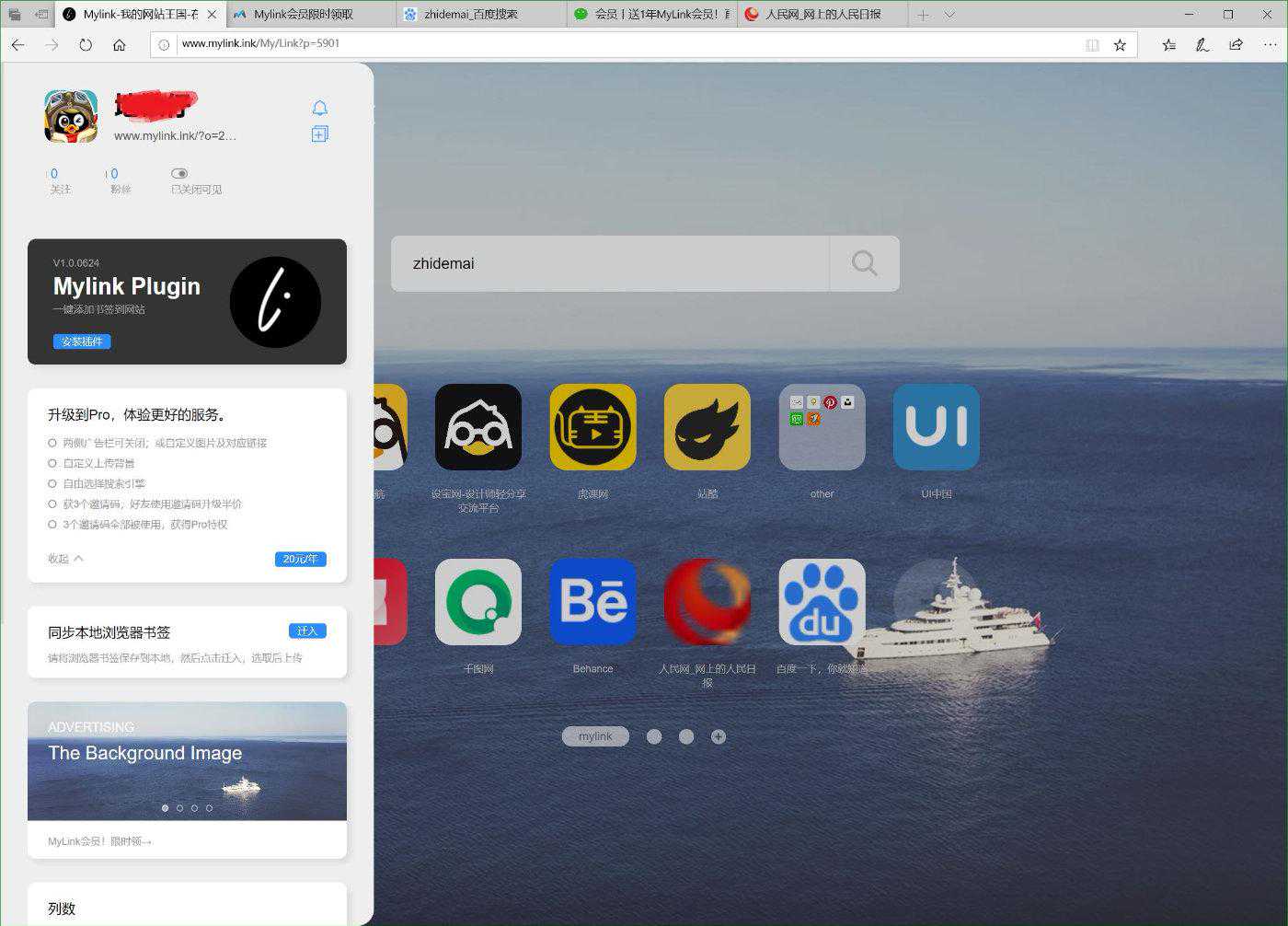 如果你嫌手动输入网址麻烦,可以下载MyLink插件,实现一键添加。从图标形状,图标显示,背景壁纸,搜索引擎,主页域名,都可以根据自己的喜好来个性定义(部分功能需要升级为Pro会员才可以,例如背景壁纸、选择搜索引擎)。比较有意思的是,MyLink还支持个人网址分享功能,只需复制主页链接,便可分享到社交媒体。